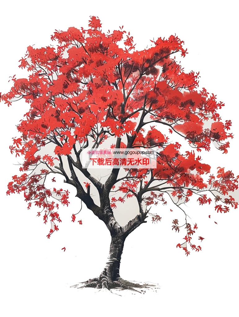 这是一幅以山茶花为主题的艺术画作。画面采用中心构图法,将山茶花植株置于纯白背景中央,突出主体的完整形态。植株特征鲜明:深灰色树干纹理清晰体现木质质感,椭圆形革质叶片呈深绿色,叶脉细节自然;红色山茶花点缀枝头,花瓣层叠饱满,部分叶片与花瓣呈现飘落动态,增添画面生动感。色彩运用高对比度搭配(红/绿/灰白),通过简洁背景强化视觉冲击力。画面下方标注的”山茶花”文字点明主题,整体呈现自然美学与植物图谱相结合的视觉特征。