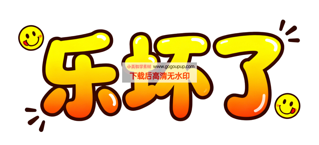 这是一幅充满感染力的正能量主题艺术字设计作品。作品采用绝对中心构图,将”乐坏了”三个大字作为视觉焦点置于纯白背景中央,通过极简处理最大化突出文字的欢乐情绪。字体设计极具特色:圆润饱满的胖胖体字形采用黄到橙的暖色渐变填充,搭配深棕色描边增强立体感,笔画处的高光处理营造出晶莹剔透的质感。创意亮点在于两侧对称分布的吐舌笑脸表情,配合放射状短线装饰形成情绪外溢的视觉隐喻。色彩策略采用高饱和度暖色调(黄/橙)与纯白背景的极致对比,整体通过图形化文字与表情符号的有机结合,成功传递出活泼俏皮、喜悦洋溢的情感氛围。