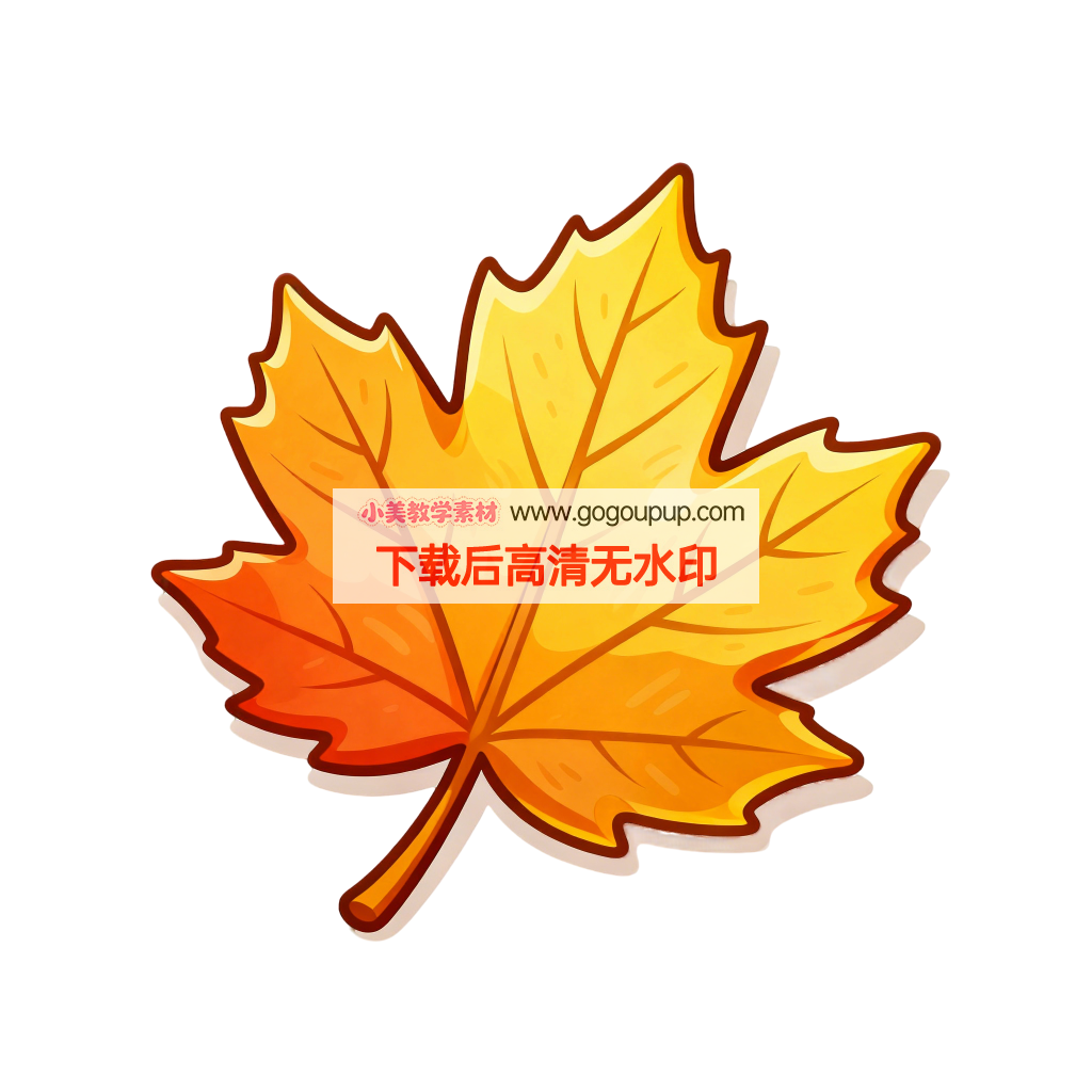 这是一幅风格鲜明、主体突出的矢量卡通插画。作品以一片枫叶作为绝对核心,通过​​居中构图​​和​​纯白背景​​最大限度地凸显了主体的形态与色彩。枫叶本身绘制精细,​​掌状的形态和边缘的锯齿​​特征被准确呈现,​​清晰可见的叶脉​​增添了画面的细节感。色彩运用是最大的亮点,采用了从​​橙黄到橙红​​的明亮渐变,完美烘托出温暖、浓郁的​​秋日氛围​​。整体画风​​简洁干净​​,视觉冲击力强,非常适合用于表达季节主题。