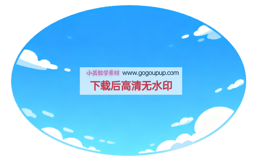 这是一幅主题鲜明、风格统一的矢量卡通插画。画面的核心是蔚蓝的天空,色彩采用了由浅至深的渐变处理,增强了空间的通透感和深度。主角是形态各异、蓬松可爱的白色云朵,它们像棉花糖一样在椭圆形的画框内错落有致地分布,形成了活泼而和谐的构图。椭圆形的边框是本作品的一大特色,它不仅限定了画面范围,更赋予了作品一种类似窗景或邮票的独特视觉美感,使构图更显集中和精致。整个画面背景纯净,元素简洁,无任何冗余细节,通过蓝白为主的配色成功地营造出一种明快、舒适、清新治愈的视觉氛围。