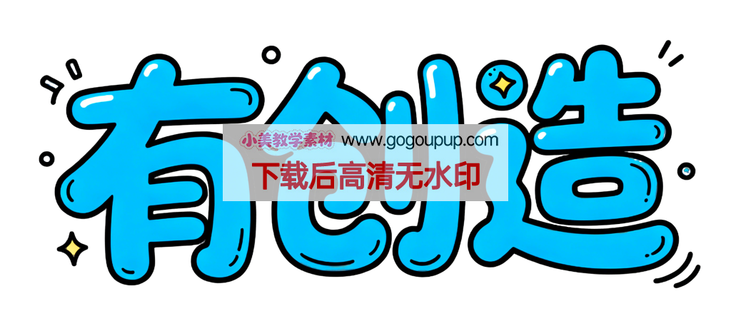 这是一幅充满活力的创意主题艺术字设计作品。画面采用​​横向居中构图​​,将”有创造”三个手写风格文字作为视觉焦点,字体造型圆润饱满充满张力。设计细节丰富:​​明亮的蓝色填充​​搭配​​黑色轮廓描边​​增强立体感,文字表面精心点缀着​​黄色四角星星​​和​​黑色短线条​​等装饰元素,营造出灵动活泼的视觉节奏。色彩策略采用​​高对比度配色方案​​(蓝/黄/黑/白),在纯白背景上形成强烈的视觉冲击力。整体设计通过​​图形化文字语言​​将抽象概念转化为具象视觉符号,完美呈现​​创意迸发、积极向上​​的视觉叙事。