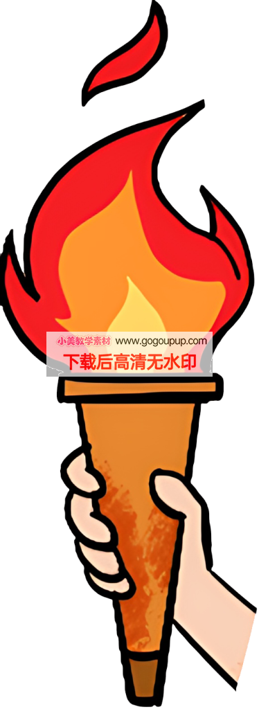 这是一幅具有强烈象征意义的火炬主题插画。作品采用绝对中心构图,将手持火炬的瞬间作为视觉焦点,纯白背景最大化突出主体的仪式感。火炬造型呈现动态燃烧状态:橙红渐变的火焰通过分层色块表现摇曳的动感,棕色火炬柄的木质纹理增添真实感。