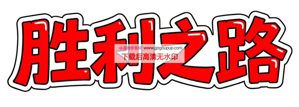 这是一幅极具视觉冲击力的励志主题艺术字设计作品。画面采用​​绝对中心构图​​,将”胜利之路”四个大字作为唯一视觉元素置于纯白背景中央,形成最强的信息传递效率。字体设计充满力量感:​​饱满的粗黑体字形​​通过​​鲜艳的红色填充​​传递胜利的激情,​​等宽黑色描边​​既增强立体感又赋予文字纪念碑式的庄重气质。色彩策略采用​​三原色对比原理​​(红/黑/白),通过极致的色彩对比确保在任何环境下都保持最佳可读性。整体设计通过​​去除冗余装饰​​和​​强化字形本身的表现力​​,完美诠释了”道路”的坚定性与”胜利”的永恒性,呈现​​权威、坚定、具有精神感召力​​的视觉特征。