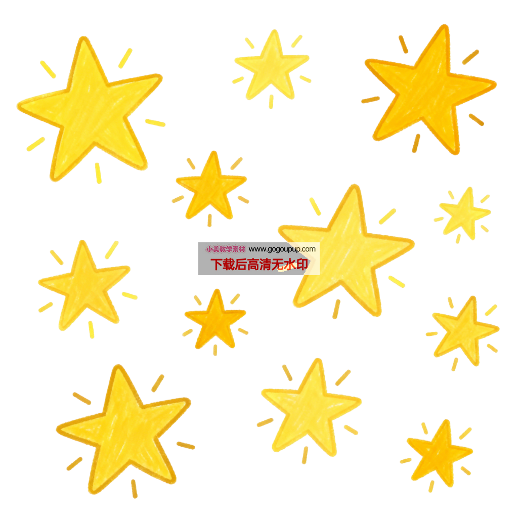这是一幅充满童趣的手绘风格星星主题插画。作品采用散点式构图,多颗五角星在画面中自然分布,形成轻松活泼的视觉节奏。每颗星星均通过粗细不一的轮廓线呈现手绘质感,明亮的黄色填充搭配向外放射的短线条生动模拟光芒效果。星星的大小与角度略有变化,错落排列增强画面动态感。色彩策略极致简约,仅用黄、黑、白三色构建画面,高对比度搭配凸显主体的明亮活泼。整体风格简洁可爱,完美呈现天真烂漫、充满幻想的童真趣味,适合儿童设计或装饰素材使用。