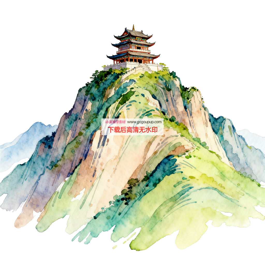 色彩与技法:色彩运用是大亮点。画家以大胆而和谐的绿色、蓝色、褐色渲染山体,通过水彩通透、灵动的特性表现出山石的厚重与植被的生机。写意奔放的笔触与局部留白技巧相结合,巧妙地模拟出山间云雾缭绕的氛围,为坚实的山体赋予了流动的呼吸感。 -